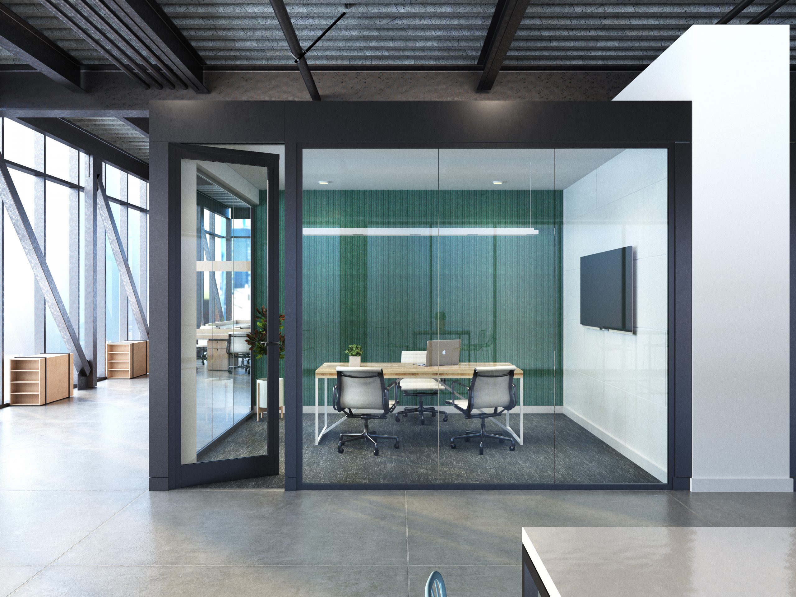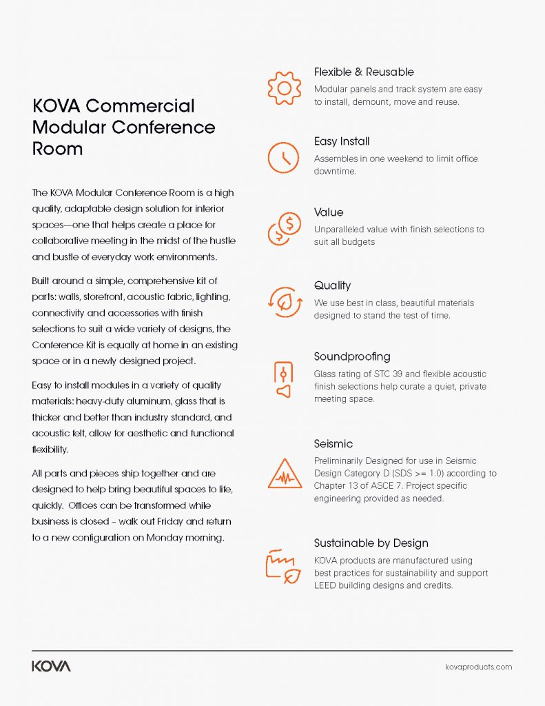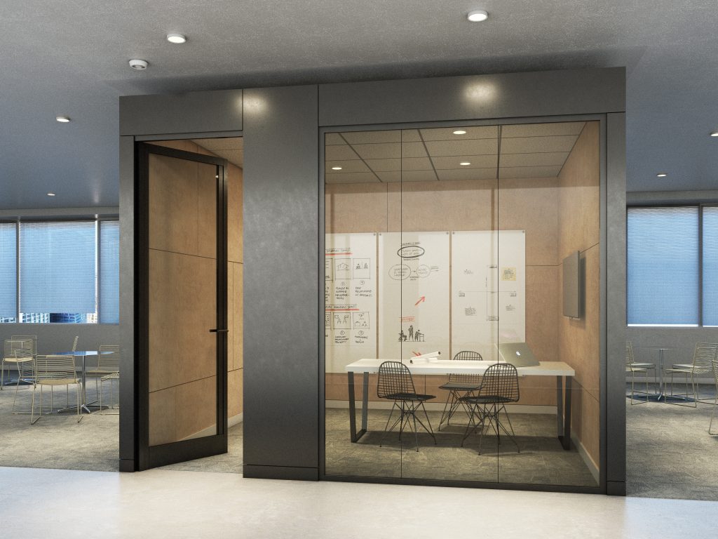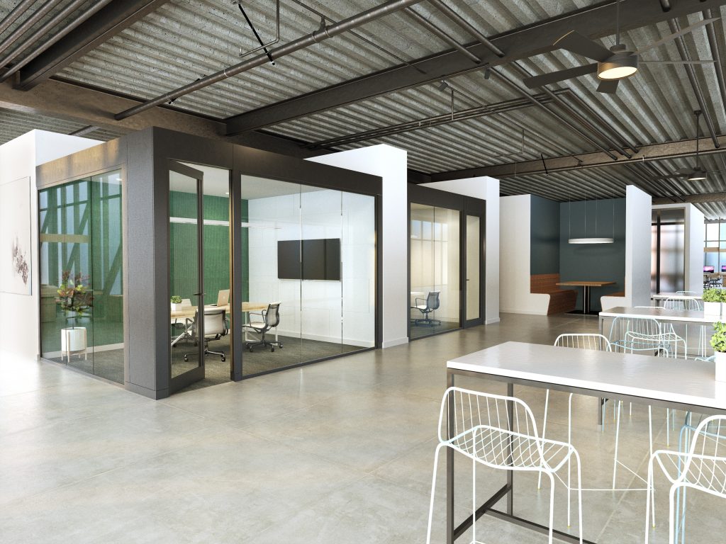 Commercial office renderings featuring KOVA’s Modular Conference room kits.