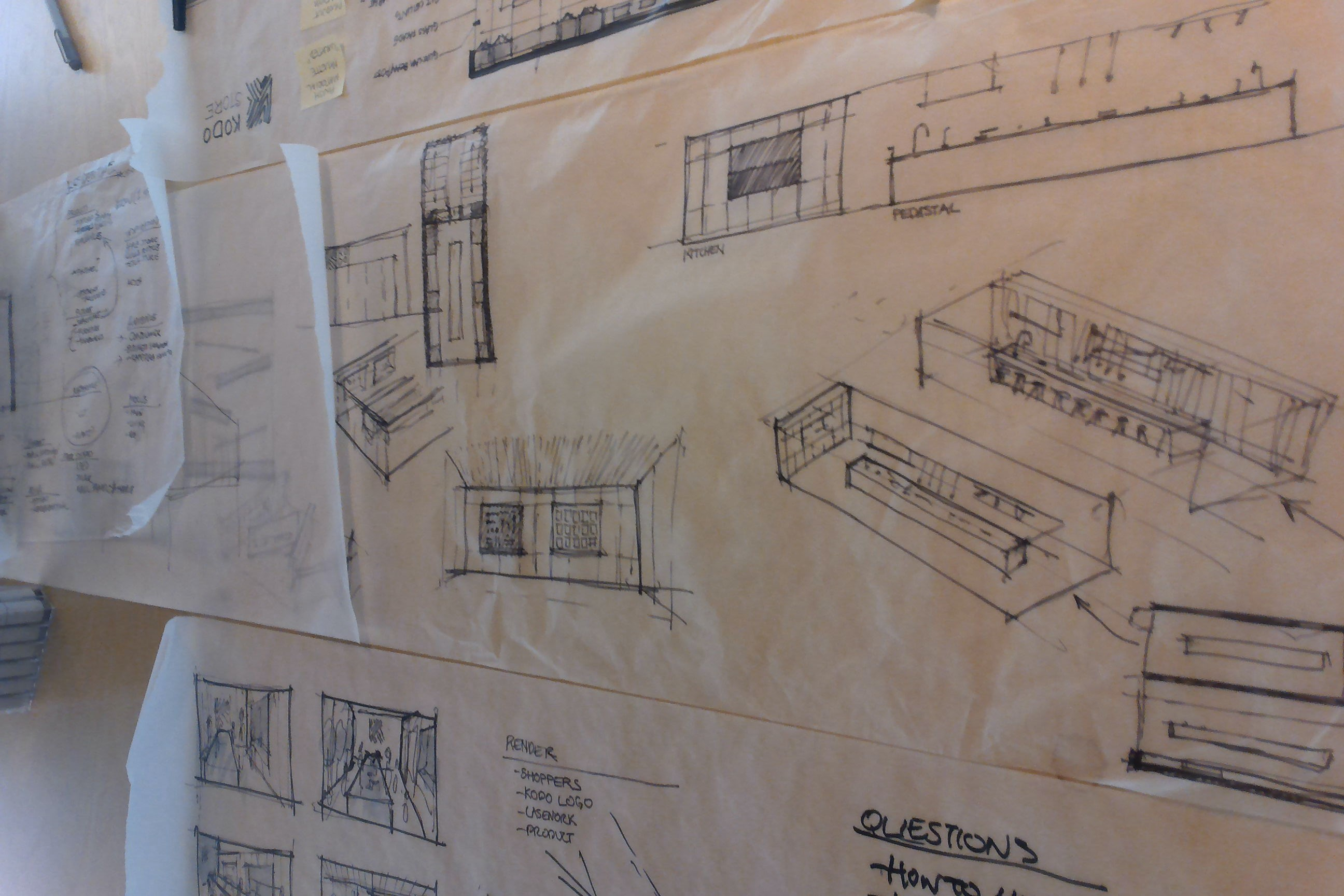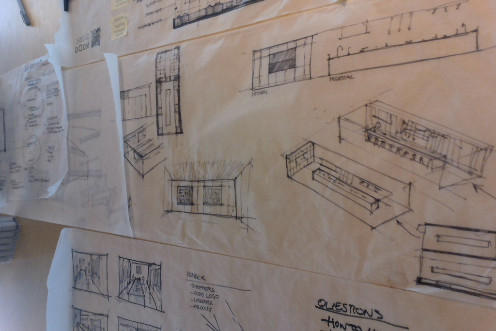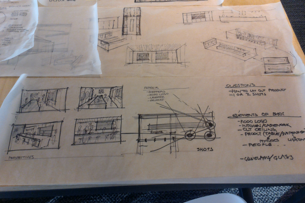 In advance of a pitch to potential investors I was asked to help develop a pop-up store concept. The goal was an urban and airy space that showcased the clean modern lines of the products in development (KODO), as well as the company’s commitment to sustainable Cross-Laminated Timber.