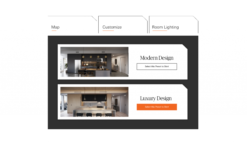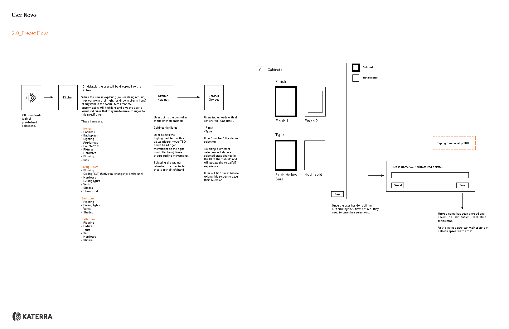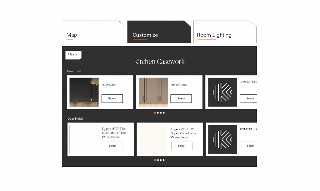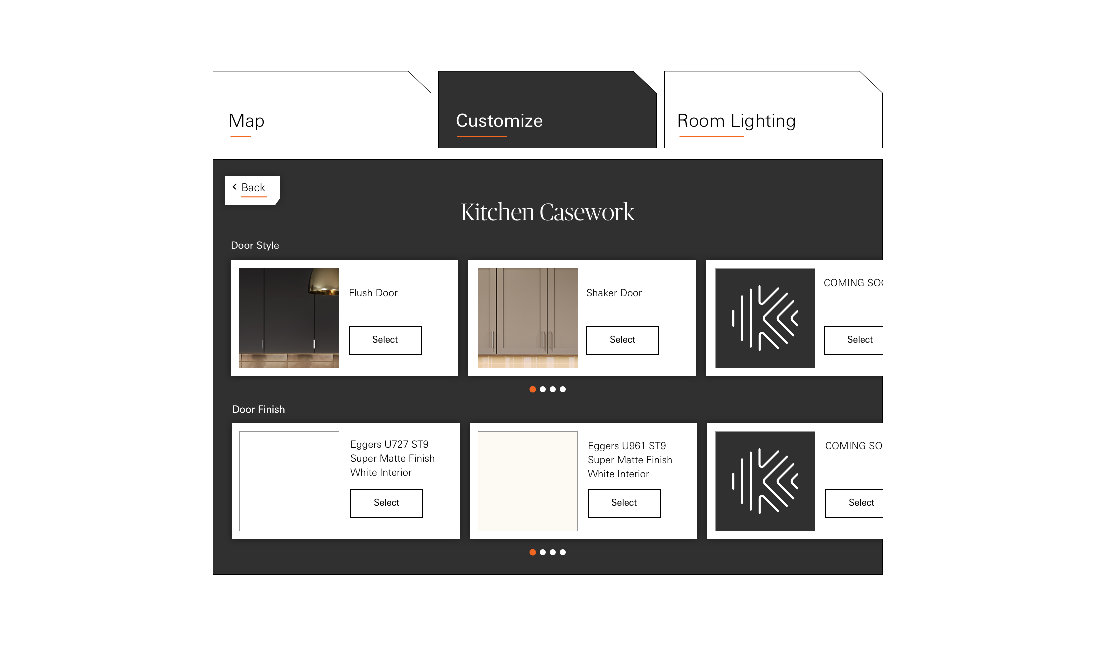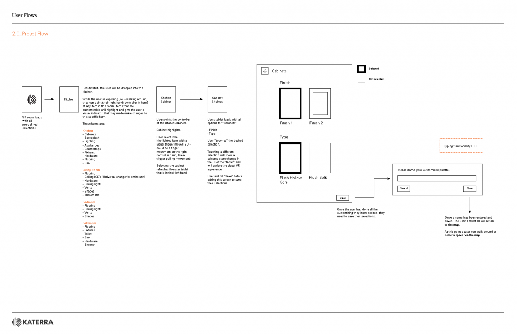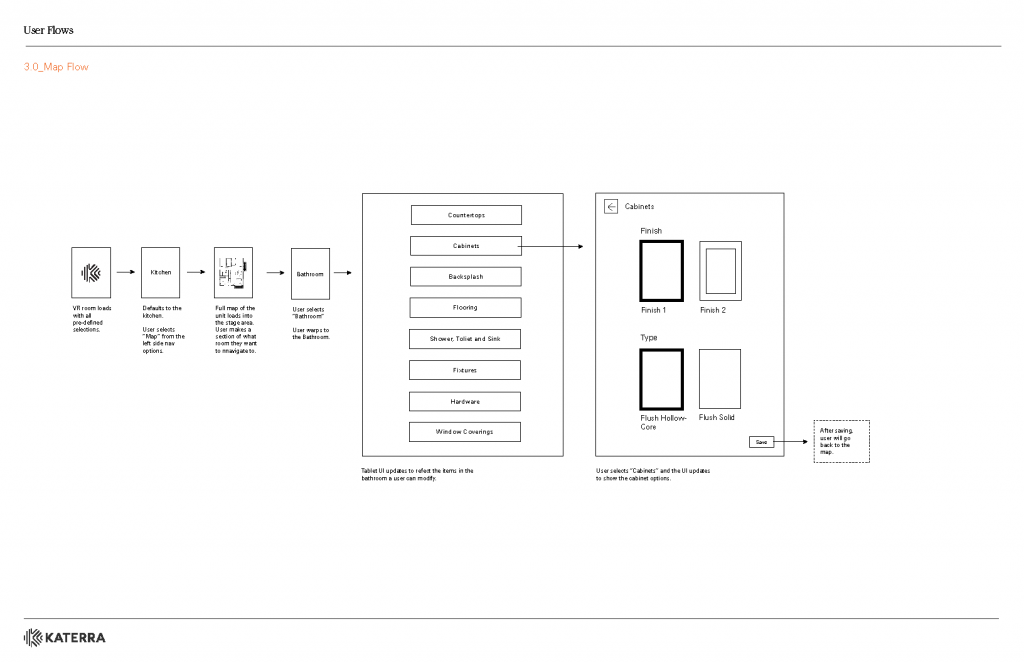 We mapped the user flows as a mix between passively browsing a showroom catalog and the action of actively designing the space around them.